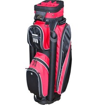 RJ Sports EX250 9 in. Cart Bag With its forward-facing pockets and two putter tubes, accessing your gear has never been easier. The RJ Sports EX250 9 in. Cart Bag also includes two towel rings, a hook-and-loop patch for your glove, a bottom trunk handle, and a cart strap loop. Additional features: 9 in., 14-way top Full-length dividers Two oversize putter tubes Seven easy-access pockets Large insulated beverage pocket Rain hood included | ||||||||||