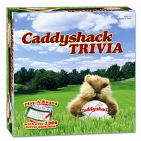 Caddyshack Trivia : Caddyshack Trivia is the first and only game that allows fans to play a round of trivia golf through answering questions and quoting one-liners that feature hilarious moments from the film. Each player will play a round of golf (either 9 or 18 holes) by answering Caddyshack trivia questions. For each hole, the player will be asked a certain number of questions according to par. The number of questions the player gets correct will determine their score for the hole. Record your scores on a Bushwood scorecard. The player with the lowest score at the conclusion of the round wins. Features: Plays like golf with 18 holes of scoring 1,016 questions (divided into par 3 and par 4 cards) with random degrees of difficulty Hole-in-one questions of extreme difficulty give you an automatic hole-in-one score Custom Bushwood score sheets are like real golf score cards Custom Caddyshack score pad featuring the gopher and course hold your score sheet | ||||||