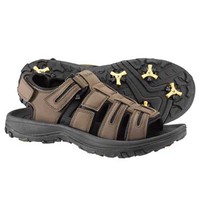 MacGregor Sandal- Brown The MacGregor Sandal has a leather upper and a velcro closure across the top and the back. It has an EVA comfort insole as well as a lightweight outsole, making light and comfortable. This sandal is finished off with Champ spikes and the Q-Lok system. | ||||||||||||